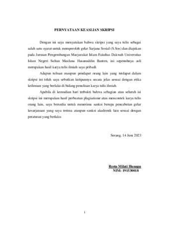 | Divisi: | Fakultas Dakwah > Pengembangan Masyarakat Islam |