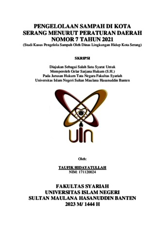 Hidayatullah, Taufik (2023) Pengelolaan Sampah di Kota Serang Menurut Peraturan Daerah Nomor 7 Tahun 2021 (Studi Dinas Lingkungan Hidup Kota Serang). Diploma atau S1 thesis, UIN Sultan Maulana Hasanuddin Banten.