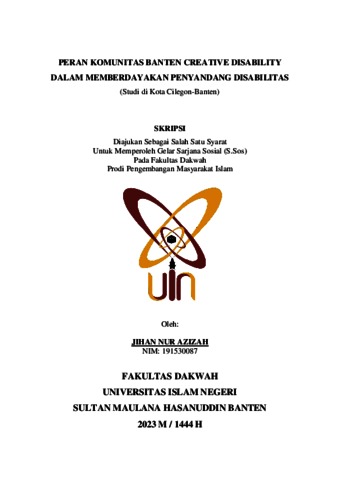 Azizah, Jihan Nur (2023) Peran Komunitas Banten Creative Disability dalam Memberdayakan Penyandang Disabilitas (Studi di Kota Cilegon-Banten). Diploma atau S1 thesis, UIN Sultan Maulana Hasanuddin Banten.