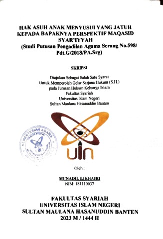 Likhairi, Munadi (2023) Hak Asuh Anak Menyusui Yang Jatuh Kepada Bapaknya Perspektif Maqasid Syari'ah (Studi Putusan Pengadilan Agama Serang No.598/Pdt.G/2018/PA.Srg). Diploma atau S1 thesis, UIN Sultan Maulana Hasanuddin Banten.