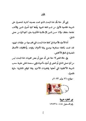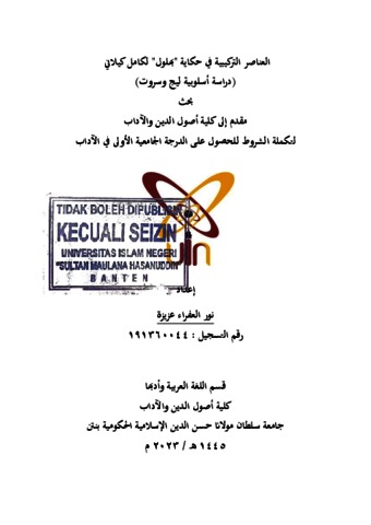 Azizah, Nurul Afra (2024) العناصر التركيبية في حكاية بهلول لكامل كيلاني (دراسة أسلوبية ليج وسروت). Diploma atau S1 thesis, UIN Sultan Maulana Hasanuddin Banten.