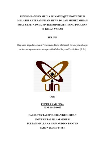 Ramadina, Puput (2024) Pengembangan Media Spinning Question Untuk Melatih Keterampilan Siswa Dalam Memecahkan Soal Cerita Pada Materi Operasi Hitung Pecahan Di Kelas V SD/MI. Diploma atau S1 thesis, UIN Sultan Maulana Hasanuddin Banten.