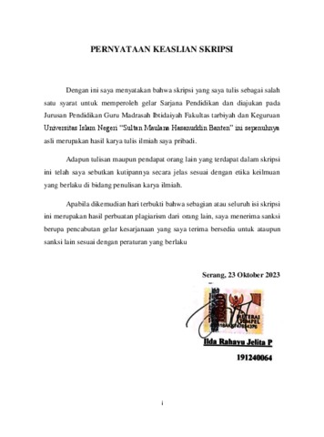 | Divisi: | Fakultas Tarbiyah dan Keguruan > Pendidikan Guru Madrasah Ibtidaiyah |