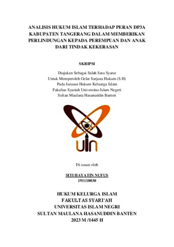 Nufus, Siti Hayatin (2023) Analisis Hukum Islam Terhadap Peran DP3A Kabupaten Tangerang Dalam Memberikan Perlindungan Kepada Perempuan Dan Anak Dari Tindak Kekerasan. Diploma atau S1 thesis, UIN Sultan Maulana Hasanuddin Banten.