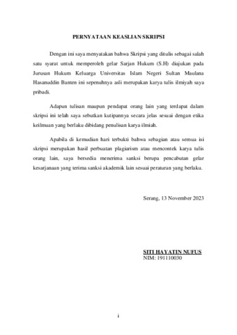 | Informasi Tambahan: | Pembimbing I: Dr. H. Ahmad Sanusi, M.A Pembimbing I: Ika Atikah, S.H.I., M.H. |
