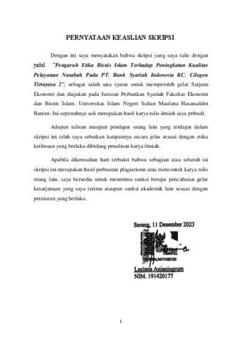 Kata Kunci (keywords): tika Bisnis Islam, Kualitas Pelayanan Nasabah, Bank Syariah, dan Bank Syariah Indonesia (BSI)