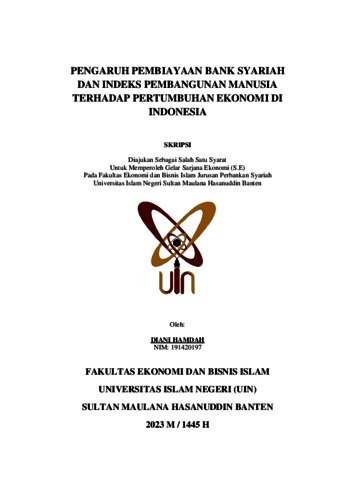 Hamdah, Diani (2024) Pengaruh Pembiayaan Perbankan Syariah dan Indeks Pembangunan Manusia di Indonesia. Diploma atau S1 thesis, UIN Sultan Maulana Hasanuddin Banten.