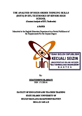 Islamiati, Izzatuddini (2024) The Analysis of High-Order Thinking Skills (HOTS) in EFL Textbook of Senior High School. Diploma atau S1 thesis, UIN Sultan Maulana Hasanuddin Banten.