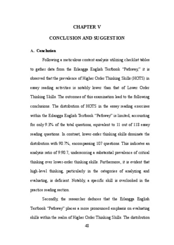 This research related to the content analysis at the first senior high school, the objective of the study analyzed the conformity of content in the Erlangga English Textbook “Pathway.” This research used descriptive qualitative method. The data collected for this research were from Erlangga English the “Pathway” The authors of the textbook are Th. M. Sudaerwati and Eudia Grace. The editors of textbook are Yuniar Widiastuti and Dwi Wahyu Priyanto. Furthermore, the textbook is published by Erlangga Publisher in the 2016. This textbook is created for Senior High School and MA Grade X. The distribution of the lower thinking skill 107 of out of 118 questions or 90.7%. while the distribution of the higher-order thinking skill 11 out 118 questions 0r 9.3%. there are 11 HOTS questions in this textbook, and the result shows that analyzing skill obtains 2 questions (1.7%), evaluating skill obtains 9 questions (7.6%) and there is no question belongs to create skill. It was concluded that the reading exercises in the Erlangga English Textbook “Pathway” lack Higher Order Thinking Skills and are dominated by lower order thinking skills. This book only obtains 11 HOTS in reading exercises, with the evaluating skill being the most used skill of the 11 HOTS in reading exercises in this book.