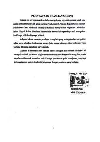 | Divisi: | Fakultas Tarbiyah dan Keguruan > Pendidikan Guru Madrasah Ibtidaiyah |