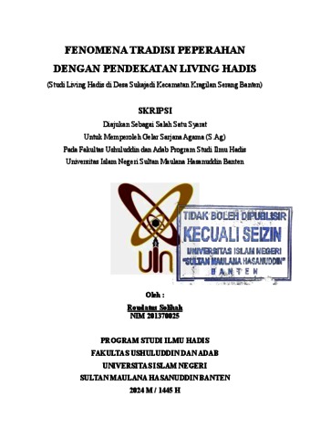Solihah, Roudatus (2024) Fenomena Tradisi Peperahan dengan Pendekatan Living Hadis (Studi Living Hadis di Desa Sukajadi Kecamatan Kragilan Serang Banten). Diploma atau S1 thesis, UIN Sultan Maulana Hasanuddin Banten.