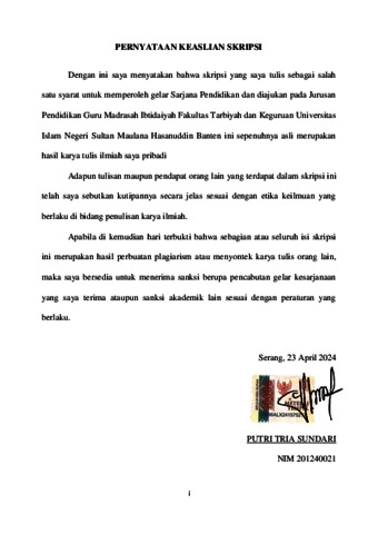 | Divisi: | Fakultas Tarbiyah dan Keguruan > Pendidikan Guru Madrasah Ibtidaiyah |