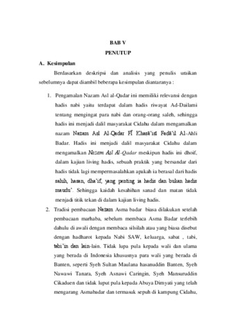 | Kata Kunci (keywords): | Asma badar, hadis, living, nazam |