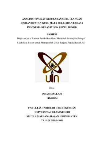 Analisis Tingkat Kesukaran Soal Ulangan Harian Buatan Guru Mata Pelajaran Bahasa Indonesia Kelas IV SDN Kepuh Denok. Tujuan penelitian ini adalah untuk mengetahui tingkat kesukaran soal ulangan harian buatan guru mata pelajaran bahasa indonesia kelas IV SDN Kepuh Denok