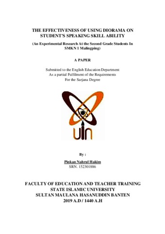 Hakim, Pinkan Nahrul (2019) THE EFFECTIVENESS OF USING DIORAMA TO STUDENTS’ SPEAKING SKILL ABILITY (Experimental Research at The Second Grade of SMKN 1 MALINGPING). Diploma atau S1 thesis, UIN SMH BANTEN.