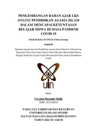 Mujib, Uswatun Hasanah (2022) Pengembangan Bahan Ajar LKS Online Pendidikan Agama Islam dalam Mencapai Ketuntasan Belajar Siswa di Masa Pandemi Covid-19 (Studi di Kelas XI SMAN 6 Kota Serang). Diploma atau S1 thesis, UIN Sultan Maulana Hasanuddin Banten.