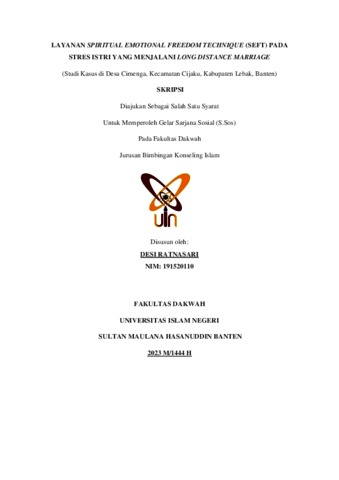Ratnasari, Desi (2023) Layanan Spiritual Emotional Freedom Technique (Seft) pada Stres Istri yang Menjalani Long Distance Marriage (Studi Kasus di Desa Cimenga, Kecamatan Cijaku, Kabupaten Lebak, Banten). Diploma atau S1 thesis, UIN Sultan Maulana Hasanuddin Banten.