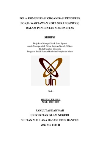 Muklisah, Olis (2023) Pola Komunikasi Organisasi Pengurus Pokja Wartawan Kota Serang (PWKS) dalam Penguatan Solidaritas. Diploma atau S1 thesis, UIN Sultan Maulana Hasanuddin Banten.