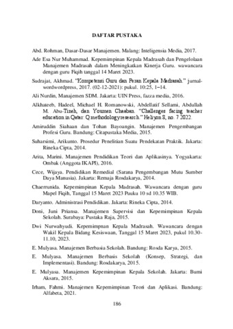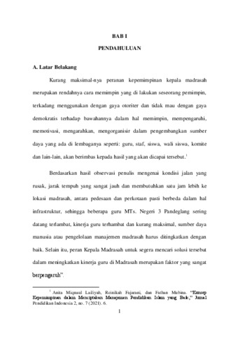 Kata Kunci (keywords): Peran kepemimpinan kepala Madrasah. Pengelolaan Manajemen Madrasah, Kinerja Guru.