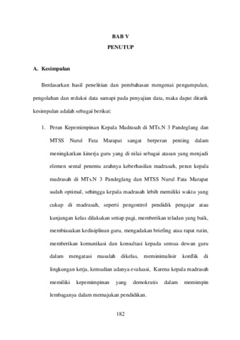 Peran Kepemimpinan Kepala Madrasah dan Pengelolaan Manajemen dalam Meningkatkan Kinerja Guru (Di MTs. Negeri 3 Pandeglang dan MTS Nurul Fata Marapat Cigeulis Kabupaten Pandeglang)