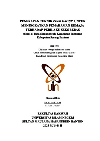 Lestari, Devi (2024) Penerapan Peer Group untuk Meningkatkan Pemahaman Remaja Terhadap Perilaku Seks Bebas (Studi di Desa Sindangheula Kec. Pabuaran Kab. Serang-Banten). Diploma atau S1 thesis, UIN Sultan Maulana Hasanuddin Banten.