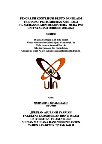Maarif, Muhammad Ginal (2024) Pengaruh Kontribusi Bruto dan Klaim Terhadap Pertumbuhan Aset Pada PT Asuransi Umum Bumiputera Muda 1967 Unit Syariah Periode 2014-2022. Diploma atau S1 thesis, UIN Sultan Maulana Hasanuddin Banten.