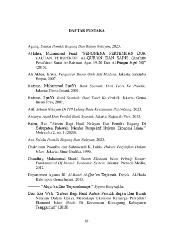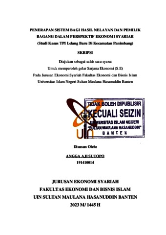 Sutopo, Angga Aji (2024) Penerapan Sistem Bagi Hasil Nelayan dan Pemilik Bagang dalam Perspektif Ekonomi Syariah (Studi Kasus TPI Lelang Baru di Kecamatan Panimbang). Diploma atau S1 thesis, UIN Sultan Maulana Hasanuddin Banten.