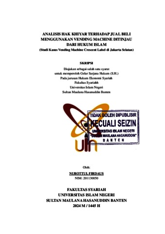Firdaus, Nurottul (2024) Analisis Hak Khiyar Terhadap Jual Beli Menggunakan Vending Machine Ditinjau Dari Hukum Islam (Studi Kasus Vending Machine Crescent Label di Jakarta Selatan). Diploma atau S1 thesis, UIN Sultan Maulana Hasanuddin Banten.