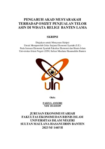 Ansori, Faizul (2024) Pengaruh Akad Musyarakah Terhadap Omzet Penjualan Telor Asin di Wisata Realigi Banten Lama. Diploma atau S1 thesis, UIN Sultan Maulana Hasanuddin Banten.