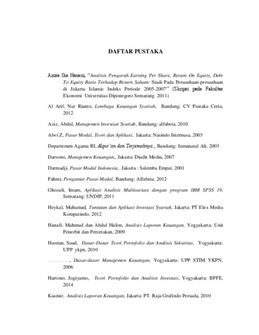 UMMAH, INAYATUL (2015) PENGARUH EARNING PER SHARE TERHADAP RETURN SAHAM SYARIAH. Diploma atau S1 thesis, IAIN SMH Banten.