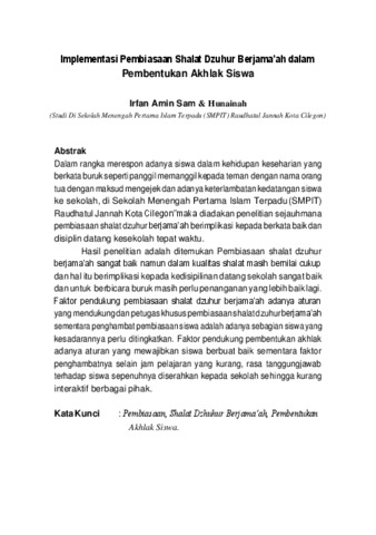 Implementasi Pembiasaan Shalat Dzuhur Berjama’ah dalam Pembentukan Akhlak Siswa Penulis Irfan Amin Sam & Hunainah.pdf